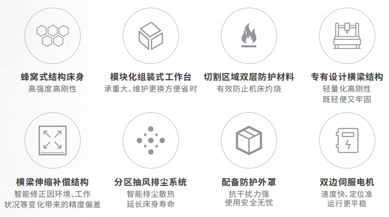 4. 具備掃碼導(dǎo)圖、圖形自動優(yōu)化、高速尋邊、自動調(diào)焦、測焦、閃電穿孔、穿孔除渣、蛙跳切割、飛行切割、空移避讓、氣體沖刷、起刀收刀工藝、斷點續(xù)切、氣壓閉環(huán)、吹氣保護、高速尋邊、振動抑制自適應(yīng)等功能,還可根據(jù)需求配備視覺余料再生產(chǎn)、自動更換噴嘴、平面坡口等高階功能。